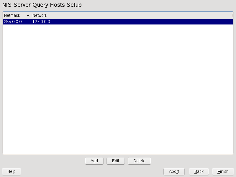 Enter the hosts that are allowed to query the NIS server. You can add,