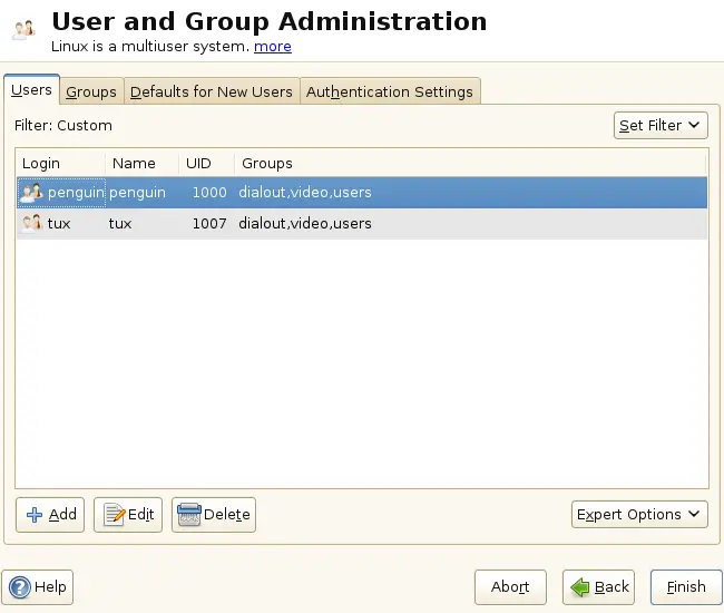 5.1 User and Group Administration Dialog