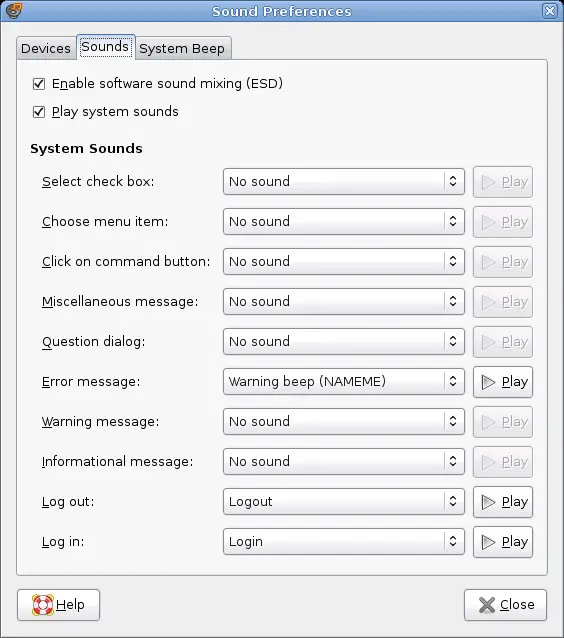 sound server starts. You can also specify which sounds to play when