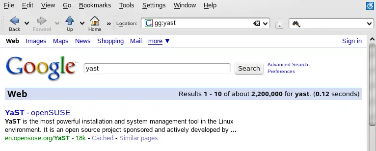 Konqueror offers Web shortcuts for quickly searching the Web. For
