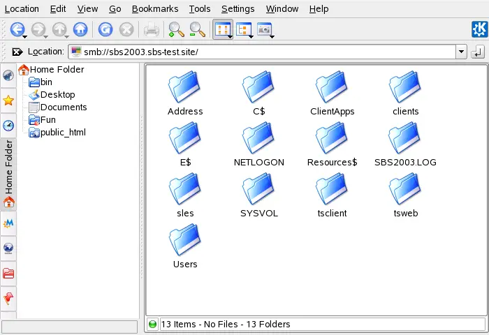 This opens a Konqueror window displaying all Samba workgroups and domains