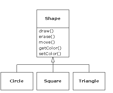 A second example is the classic “shape” example, perhaps used in a computer-aided design system or game simulation. The base type is “shape,” and each shape has a size, a color, a position, and so on. Each shape can be drawn, erased, moved, colored, etc. From this, specific types of shapes are derived (inherited)—circle, square, triangle, and so on — each of which may have additional characteristics and behaviors. Certain shapes can be flipped, for example. Some behaviors may be different, such as when you want to calculate the area of a shape. The type hierarchy embodies both the similarities and differences between the shapes.