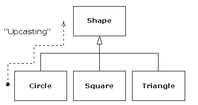 We call this process of treating a derived type as though it were its base type upcasting. The name cast is used in the sense of casting into a mold and the up comes from the way the inheritance diagram is typically arranged, with the base type at the top and the derived classes fanning out downward. Thus, casting to a base type is moving up the inheritance diagram: “upcasting.”