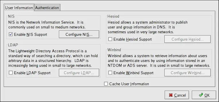 for configuring NIS, LDAP, and Hesiod to retrieve user information as well