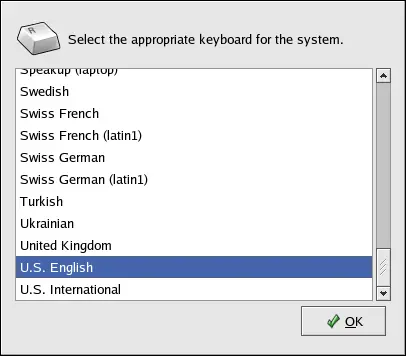 Select a keyboard layout from the list (for example,
