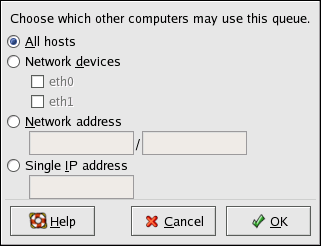 | | If this option is enabled, all print jobs are accepted from all hosts
