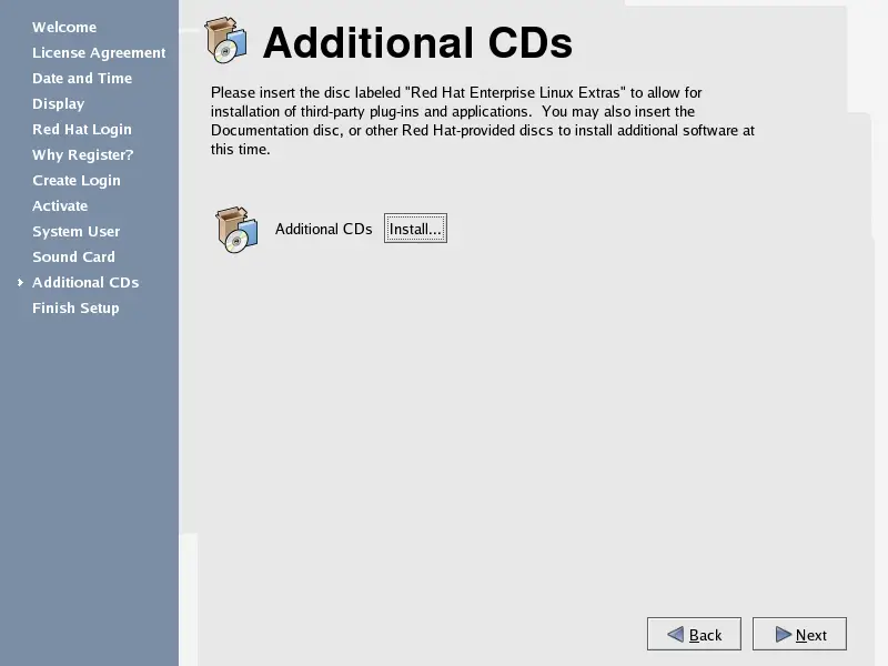the Additional CDs screen. Insert the CD