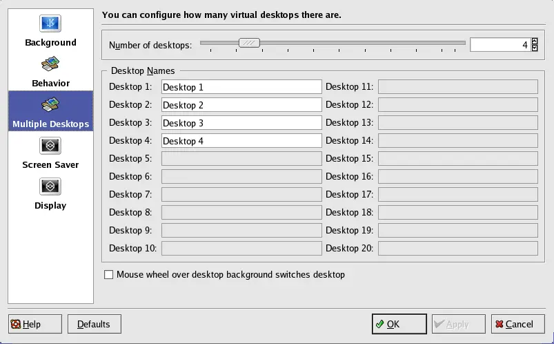Background, Behavior, Multiple Desktops, Screen Saver, and
