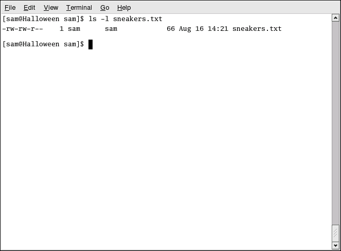 file (user), and to which group the owner belongs (user). (By default, the name of your group is the same as your