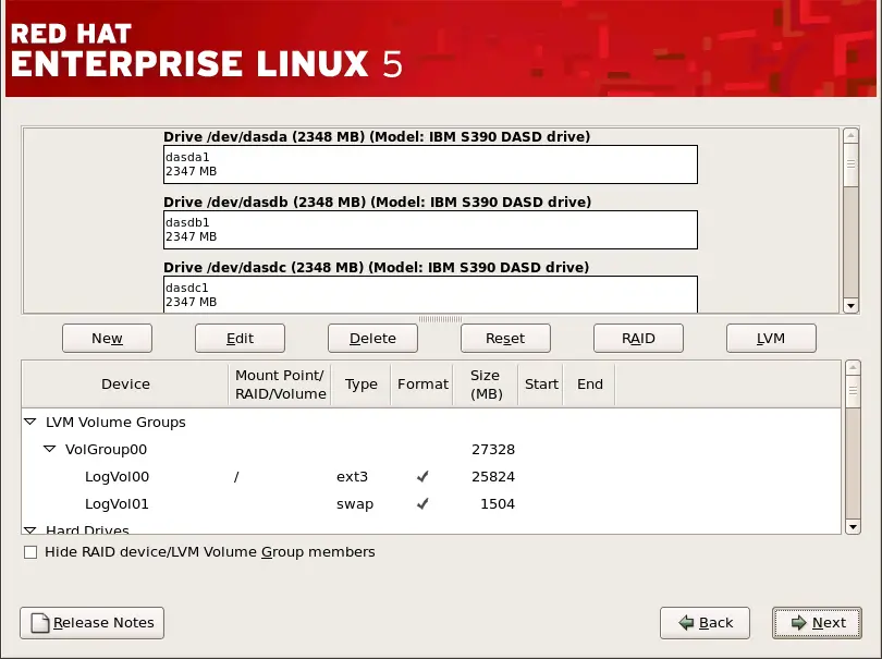 Finally, note which device is associated with /boot. The kernel files and bootloader sector will be associated with this device. For most common cases, the first DASD or SCSI LUN will be used, but for some unusual cases, this may not be the case. The device number will be used when re-ipling the post-installed system.