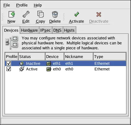 panel) => => , or type the command system-config-network at a shell prompt (for example, in an XTerm or a