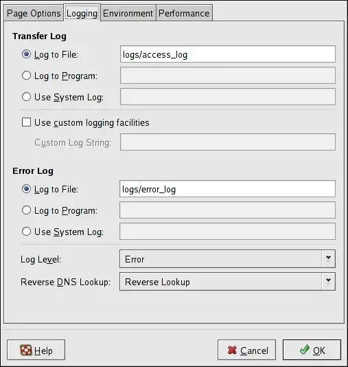 Use the Log Level menu to set the verbosity of the error messages in the error logs. It can be set (from least verbose to most verbose) to emerg, alert, crit, error, warn, notice, info or debug. This option