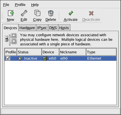 After configuring the Ethernet device, it appears in the device list as shown in Figure 14.3, “Ethernet Device”.