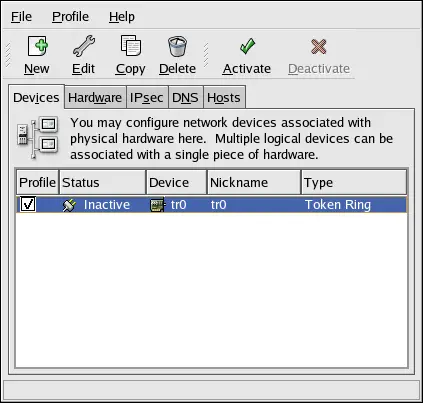 After configuring the token ring device, it appears in the device list as shown in Figure 14.11, “Token Ring Device”.