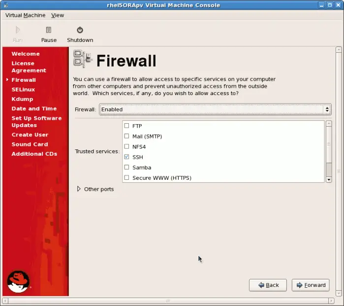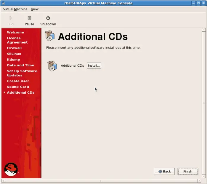 You can to install any additional software packages from CD you could do so on this screen. It it often more efficient to not install any additional software at this point but add it later using yum. Click