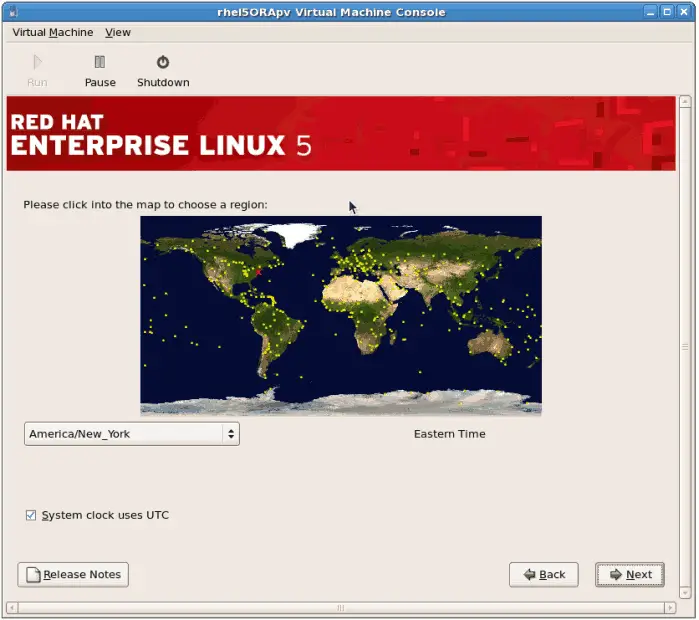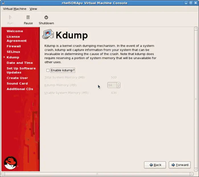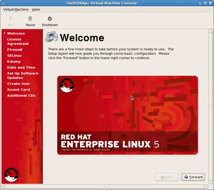 The Red Hat Enterprise Linux 5 login screen displays. Log in using the username created in the previous steps.
