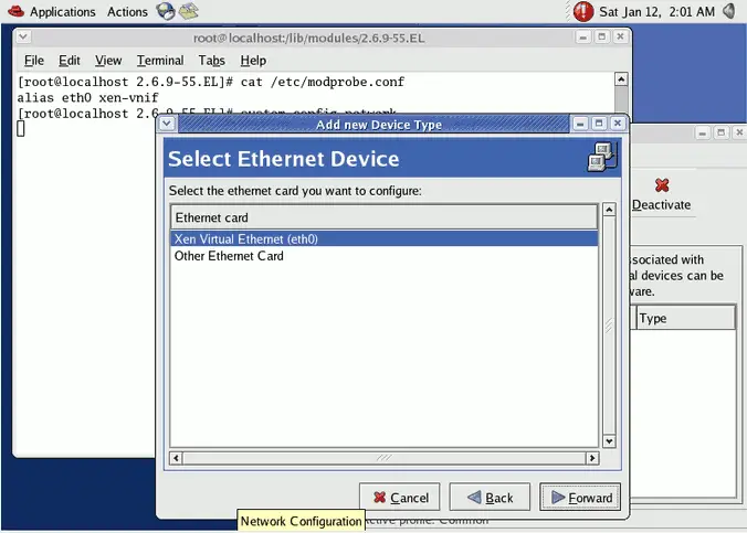 2. On Red Hat Enterprise Linux 4 verify the file /etc/modprobe.conf contains the line “alias eth0 xen-vnif”.