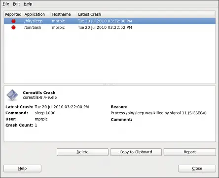 abrt-gui, the GUI application that shows collected crash dumps and allows you to edit, report, and delete them