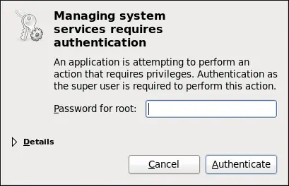 Unless you are already authenticated, you will be prompted to enter the superuser password the first time you make a change: