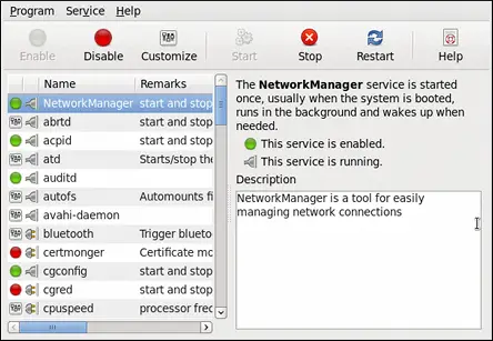 The Service Configuration utility is a graphical application developed by Red Hat to configure which services are started at boot time, as well as to start, stop, and restart them from the menu.