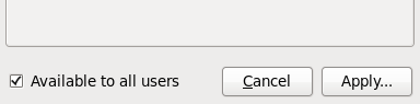 Check the Available to all users checkbox to ask NetworkManager to make the connection a system-wide connection. Depending on system policy, you may then be prompted for the root password by the PolicyKit application. If so, enter the root password to finalize the change.