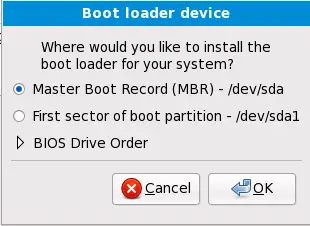 If you have a RAID card, be aware that some BIOSes do not support booting from the RAID card. In cases such as these, the boot loader should not be installed on the MBR of the RAID array. Rather, the boot loader should be installed on the MBR of the same drive as the /boot/ partition was created.