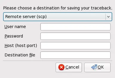 saves details of the error to a remote location using SCP. You must specify the username, password, host, and destination file.