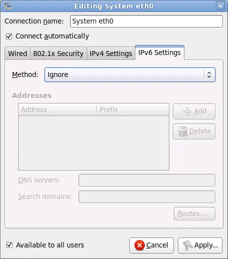 Use the IPv6 Settings tab tab to configure the IPv6 parameters for the previously selected network connection.