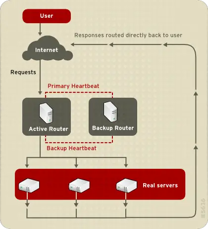 Building a Load Balancer Add-On setup that uses direct routing provides increased performance benefits compared to other Load Balancer Add-On networking topologies. Direct routing allows the real servers to process and route packets directly to a requesting user rather than passing all outgoing packets through the LVS router. Direct routing reduces the possibility of network performance issues by relegating the job of the LVS router to processing incoming packets only.