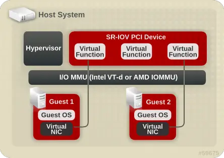 The PCI-SIG (PCI Special Interest Group) developed the Single Root I/O Virtualization (SR-IOV) specification. The SR-IOV specification is a standard for a type of PCI passthrough which natively shares a single device to multiple guests. SR-IOV reduces hypervisor involvement by specifying virtualization compatible memory spaces, interrupts and DMA streams. SR-IOV improves device performance for virtualized guests.