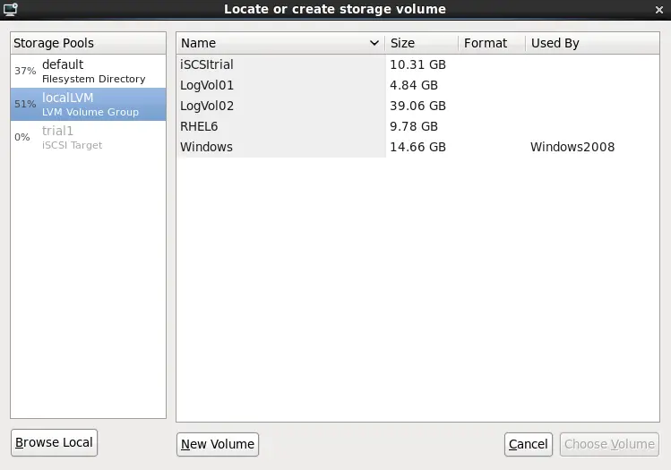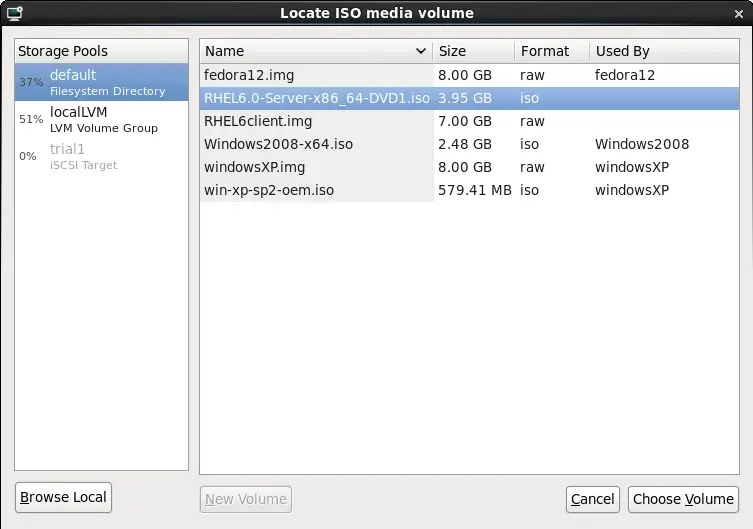 Press the Choose Volume button to select the volume for the virtualized guest.