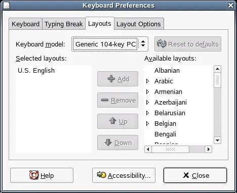 Use the Keyboard tabbed page to set general keyboard preferences.