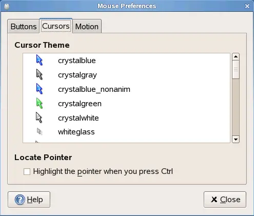 Use the Cursors tabbed page to set your mouse pointer preferences.