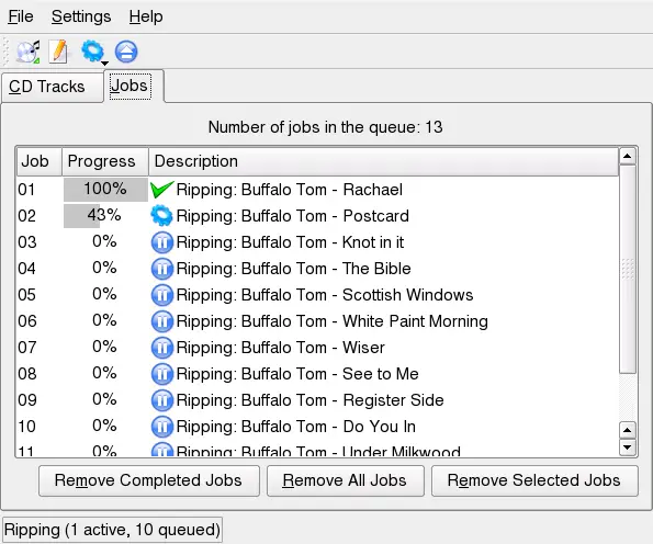 started, it lists all the tracks of your CD in the tab. Select the tracks to rip and encode.