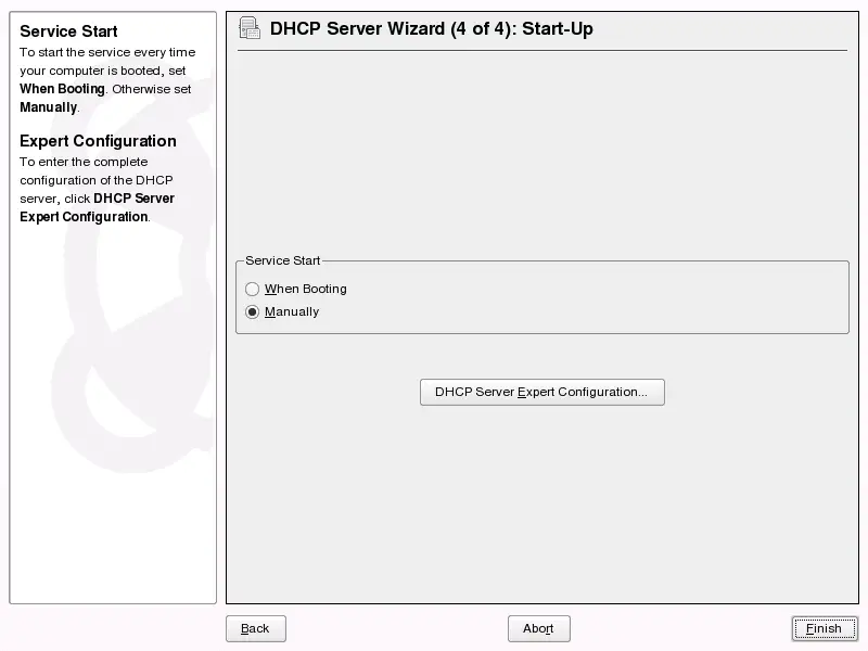 shown in which you can define how the DHCP server should be started.