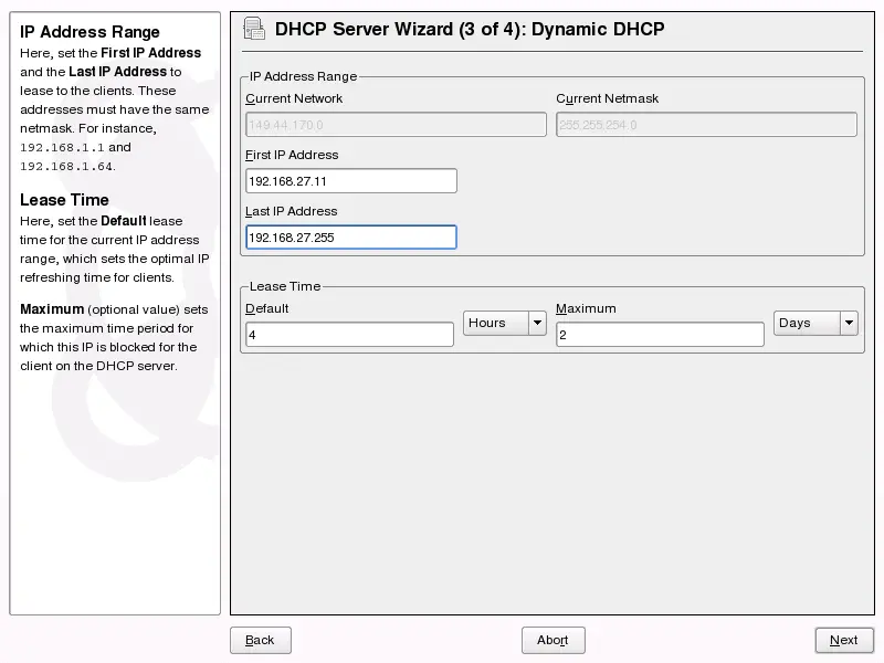 netmask. In the middle part of the dialog, modify the DHCP server