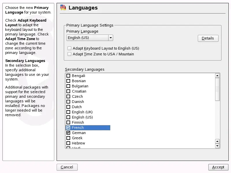 time using . The primary language set in YaST