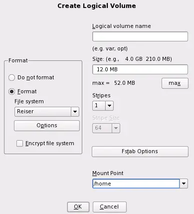 reiserfs or ext2, is created on a logical volume and is then designated a